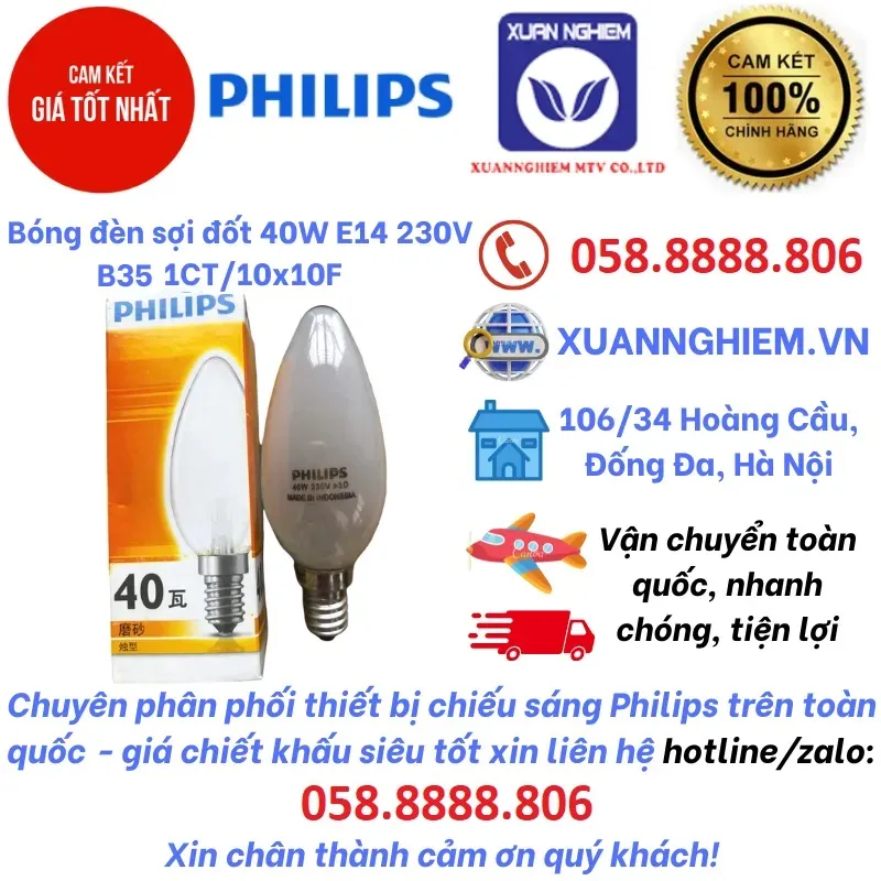 Bóng đèn sợi đốt halogen 40W E14 230V B35 1CT/10x10F Philips