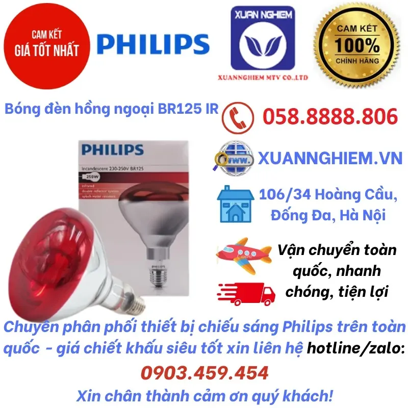 Bóng đèn hồng ngoại 375W Philips IR375CH R125 E27 230-250V CL 1CT/10