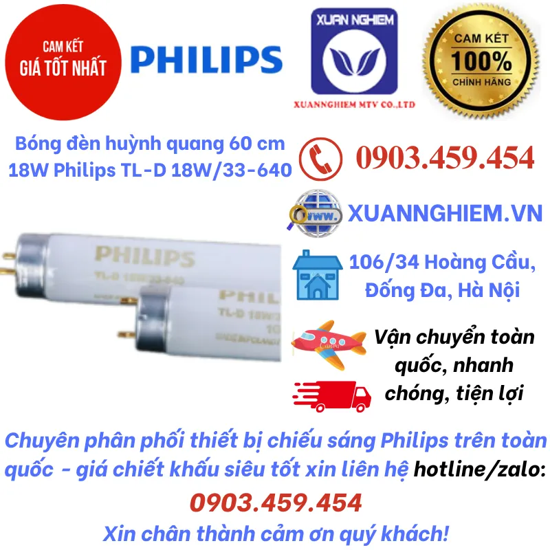 Bóng đèn huỳnh quang 60 cm 18W Philips TL-D 18W/33-640