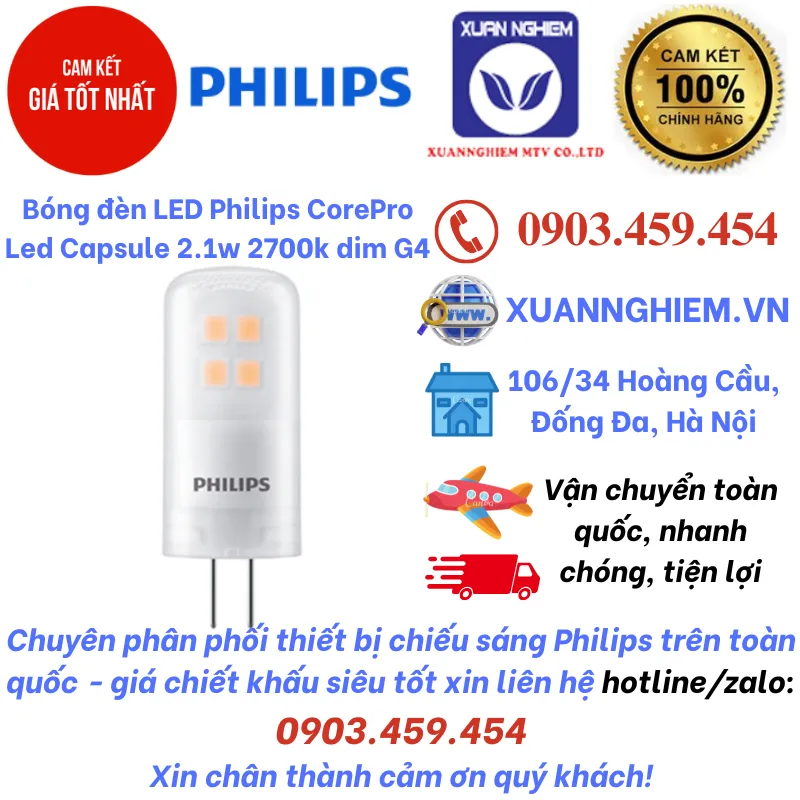 Bóng đèn LED Philips CorePro Led Capsule 2.1w 2700k dim G4