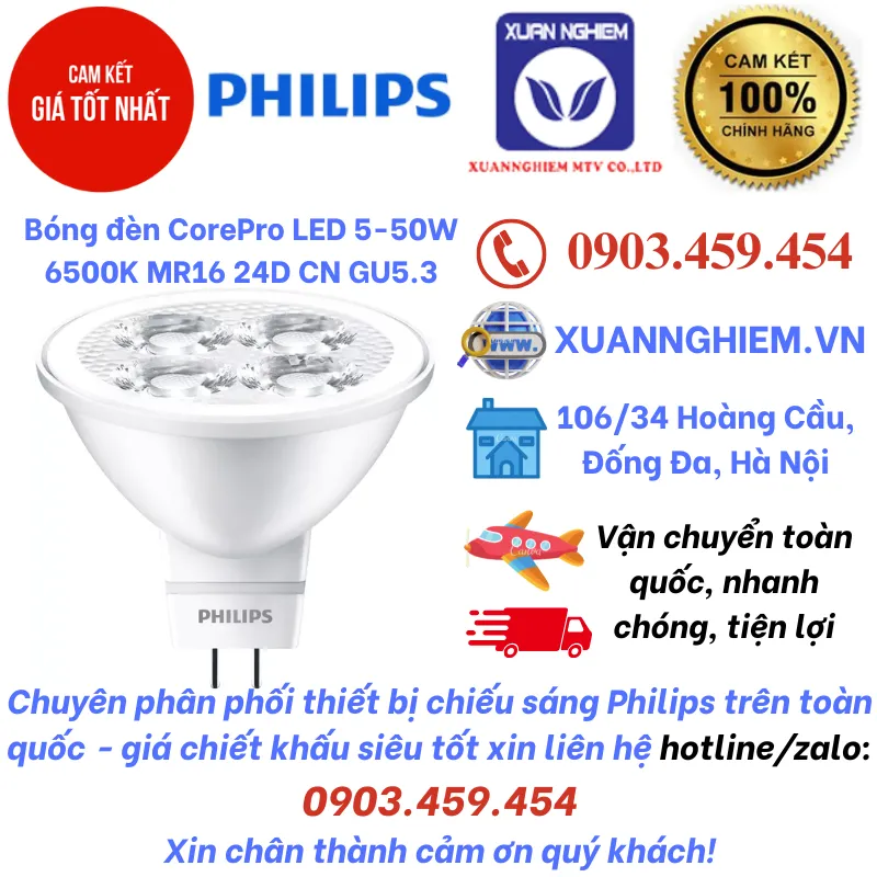 Bóng đèn Philips CorePro LED 5-50W 6500K MR16 24D CN GU5.3