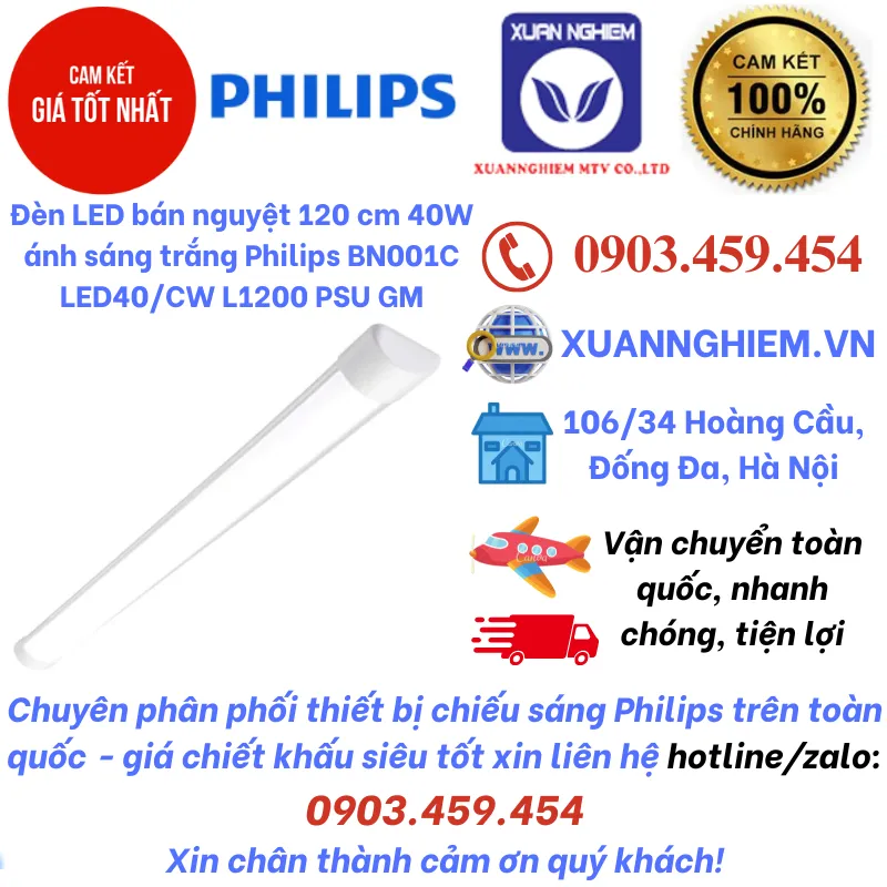 Đèn LED bán nguyệt 120 cm 40W ánh sáng trắng Philips BN001C LED40/CW L1200 PSU GM
