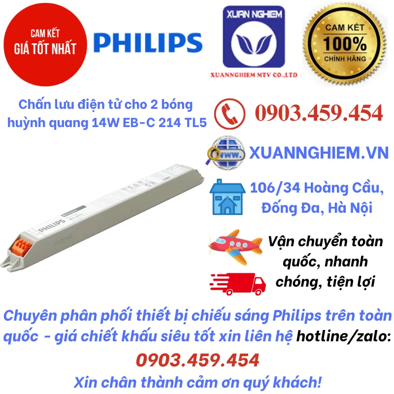 Chấn lưu điện tử Philips cho 2 bóng huỳnh quang 14W EB-C 214 TL5