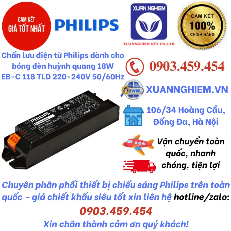 Chấn lưu điện tử Philips dành cho bóng đèn huỳnh quang 18W EB-C 118 TLD 220-240V 50/60Hz