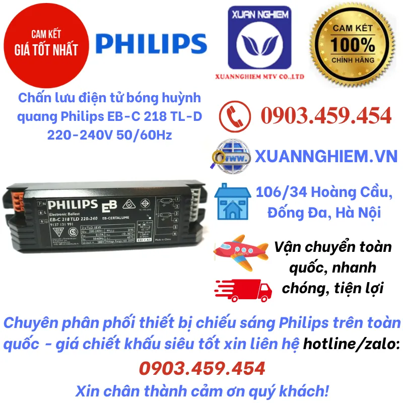 Chấn lưu điện tử bóng huỳnh quang Philips EB-C 218 TL-D 220-240V 50/60Hz