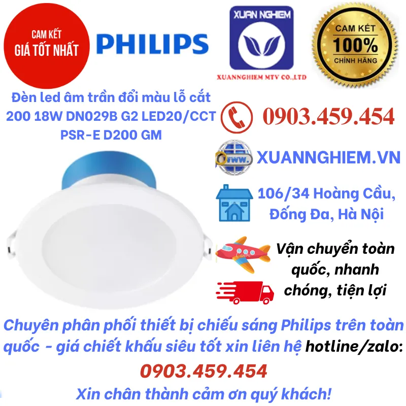 Đèn led âm trần đổi màu lỗ cắt 200 18W DN029B G2 LED20/CCT PSR-E D200 GM Philips