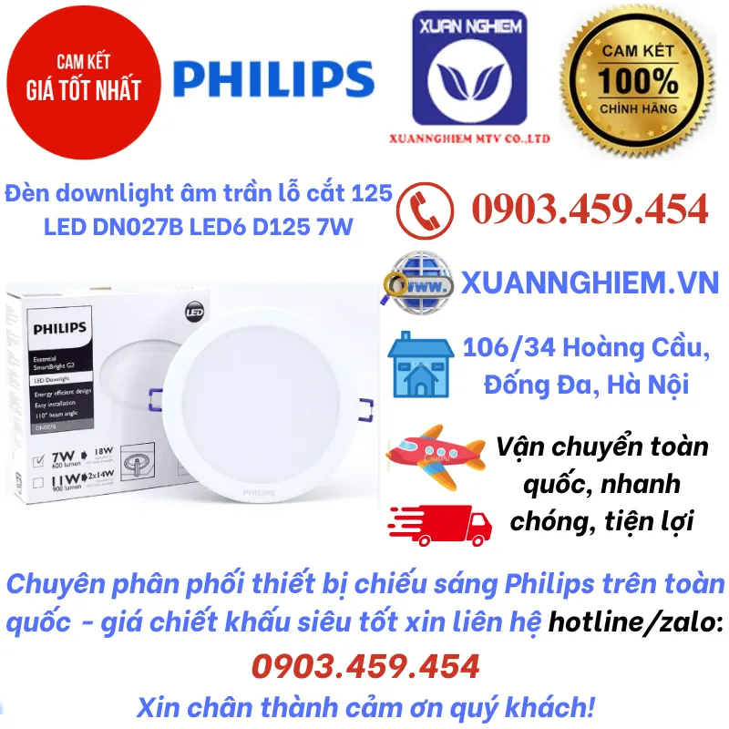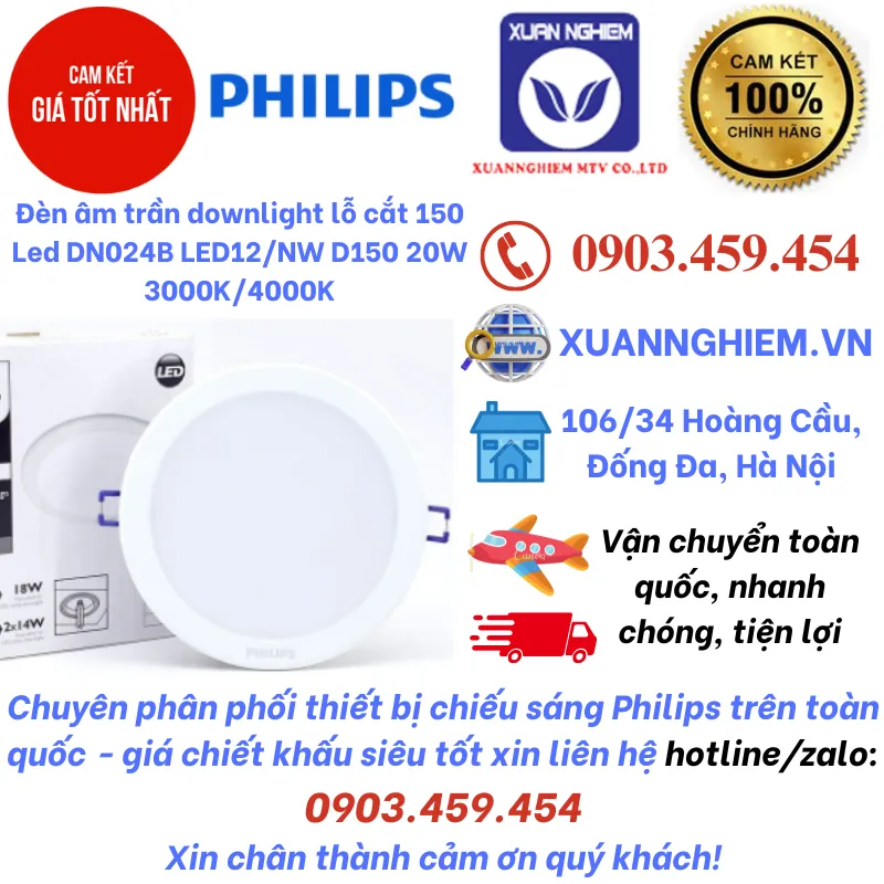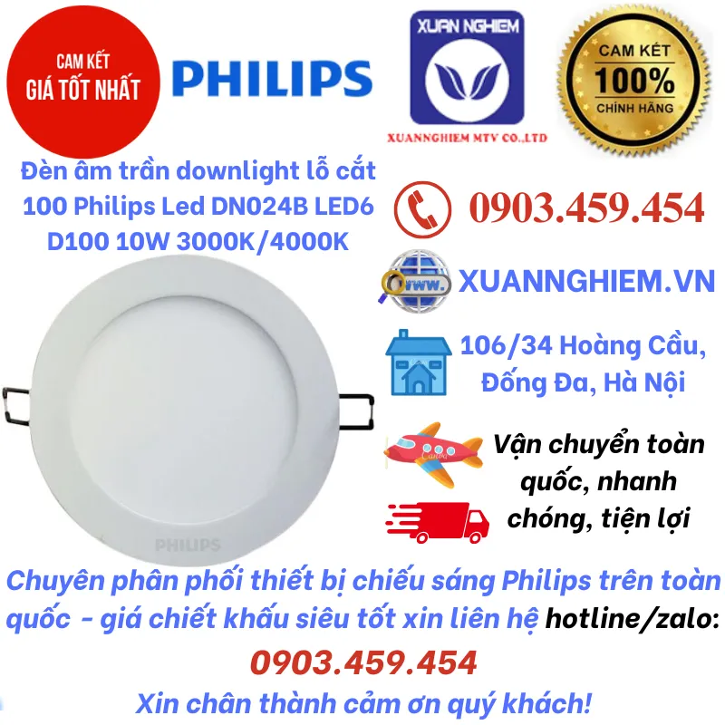 Đèn âm trần downlight lỗ cắt 100 Philips Led DN024B LED6 D100 10W 3000K/4000K