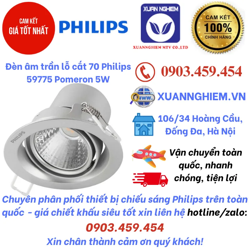 Đèn âm trần lỗ cắt 70 Philips 59775 Pomeron 5W