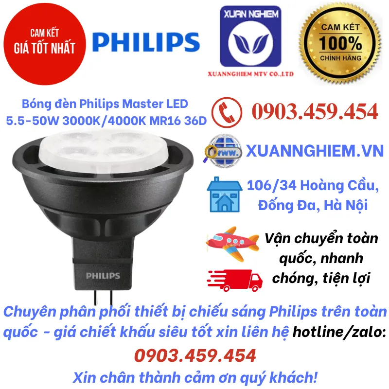 Bóng đèn Philips Master LED 5.5-50W 3000K MR16 36D và Bóng Master LED 5.5-50W 4000K MR16 36D