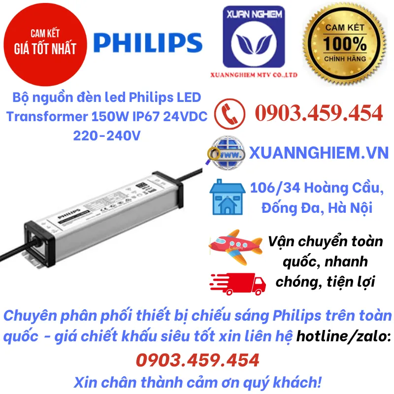 Bộ nguồn đèn led Philips LED Transformer 150W IP67 24VDC 220-240V