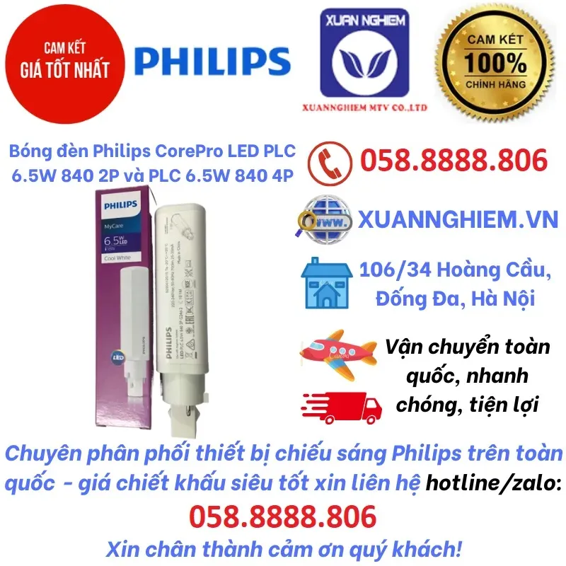 Bóng đèn Philips CorePro LED PLC 6.5W 840 2P và PLC 6.5W 840 4P