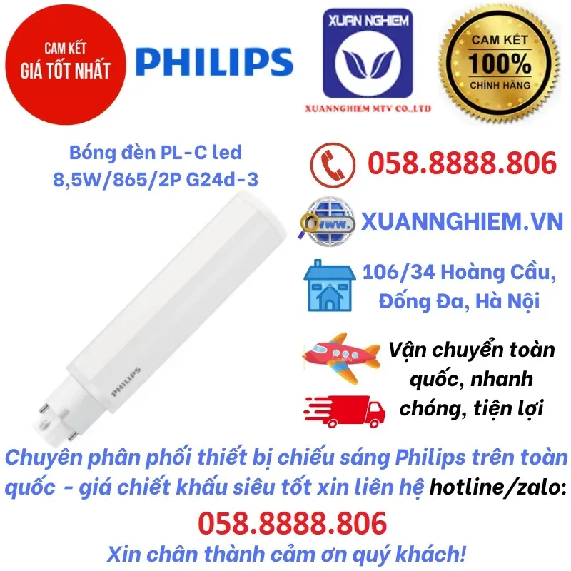 Bóng đèn PL-C led 8,5W/865/2P G24d-3