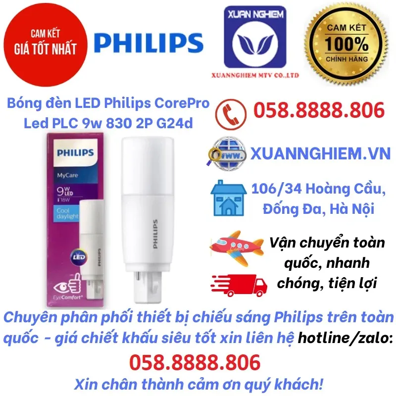 Bóng đèn LED Philips CorePro Led PLC 9w 830 2P G24d