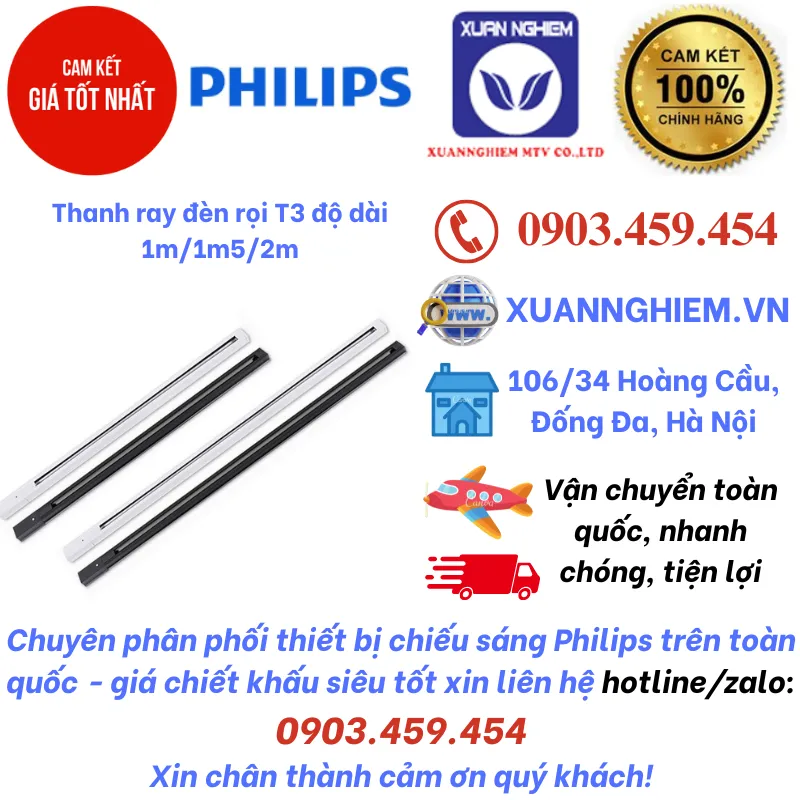 Thanh ray đèn rọi T3 độ dài 1m/1m5/2m