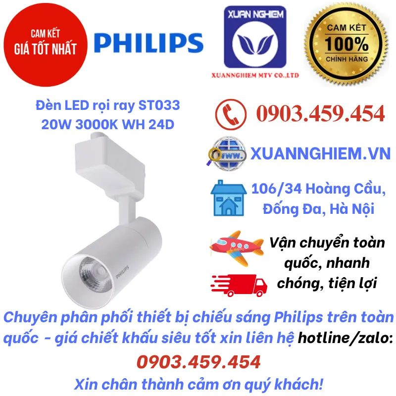 Đèn LED rọi ray ST033 20W 3000K WH 24D