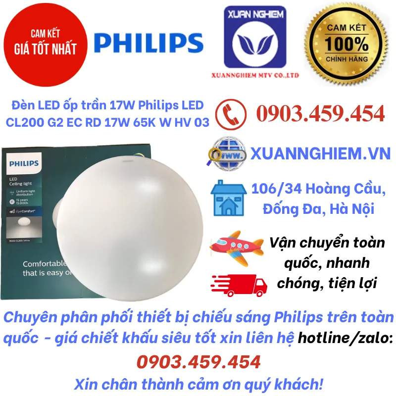 Đèn LED ốp trần 17W Philips LED CL200 G2 EC RD 17W 65K W HV 03