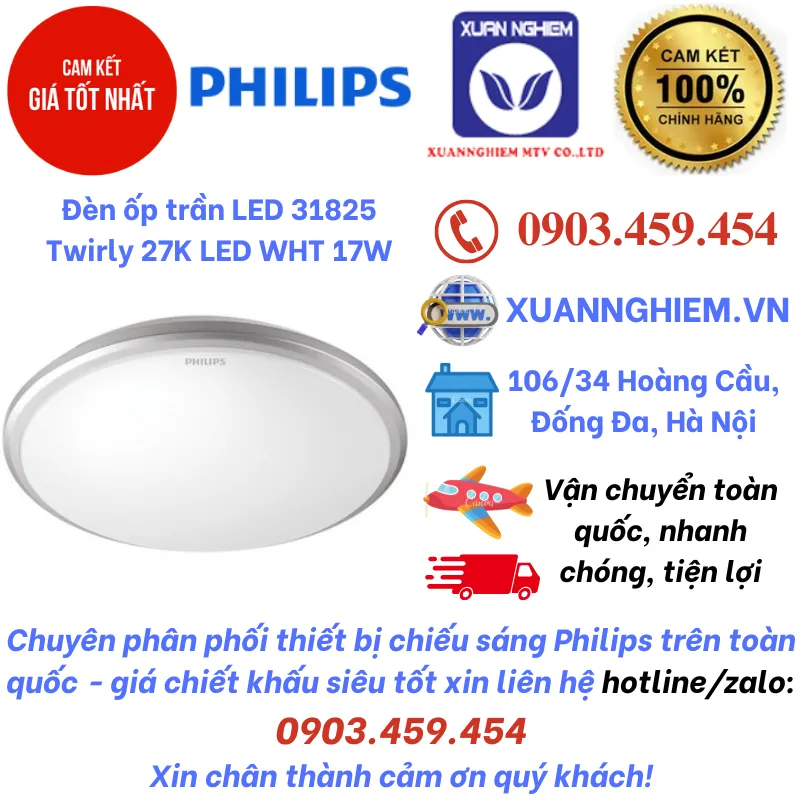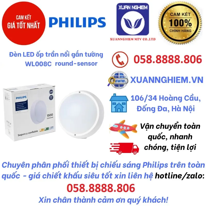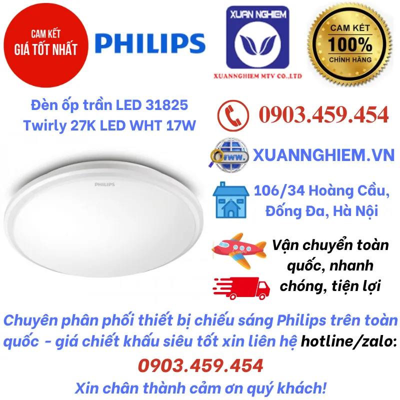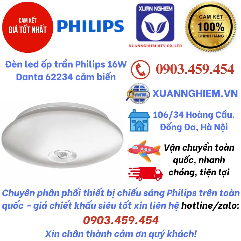Đèn led ốp trần Philips 16W Danta 62234 cảm biến
