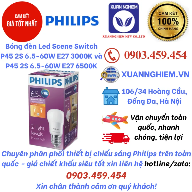 Bóng đèn Led Scene Switch P45 2S 6.5-60W E27 3000K và P45 2S 6.5-60W E27 6500K