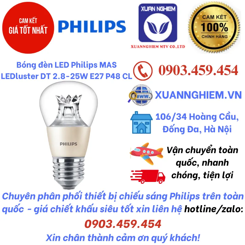 Bóng đèn LED Philips MAS LEDluster DT 2.8-25W E27 P48 CL