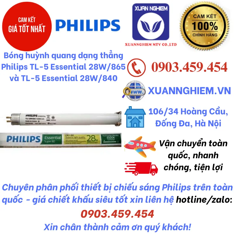 Bóng huỳnh quang dạng thẳng Philips TL-5 Essential 28W/865 và TL-5 Essential 28W/840