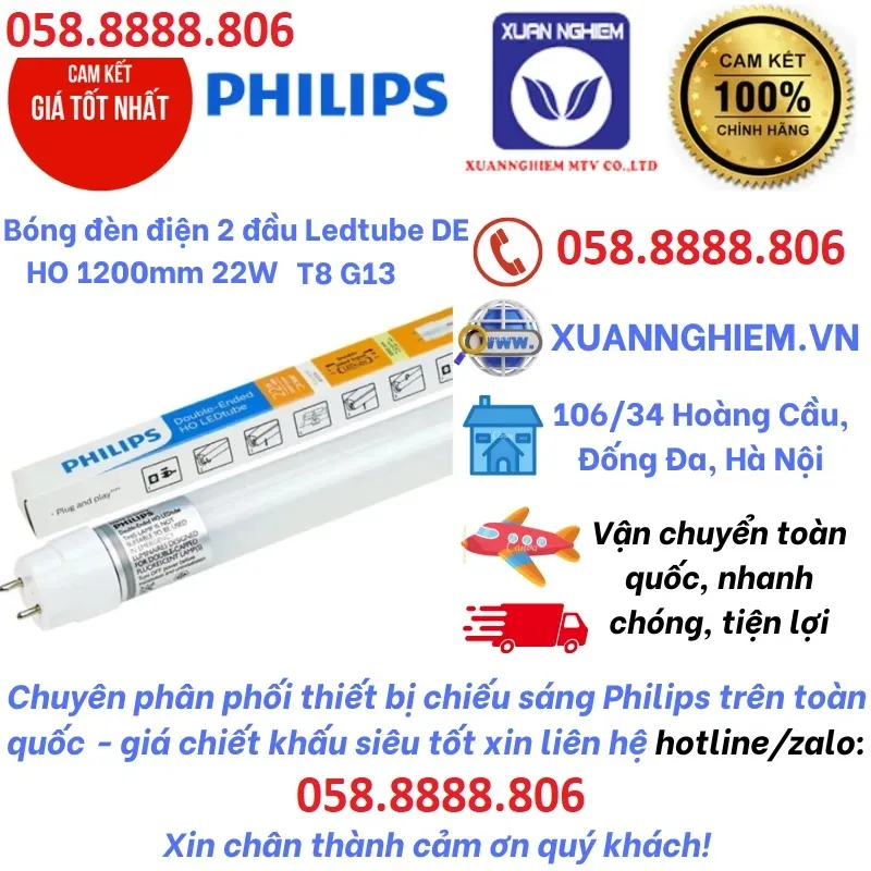 Bóng đèn điện 2 đầu Ledtube DE HO 1200mm 22W 740 T8 G13