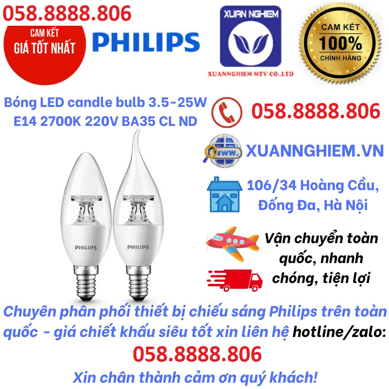 Bóng LED candle bulb 3.5-25W E14 2700K 220V BA35 CL ND / LED 5.5-40W E14 2700K 220V BA35 CL ND