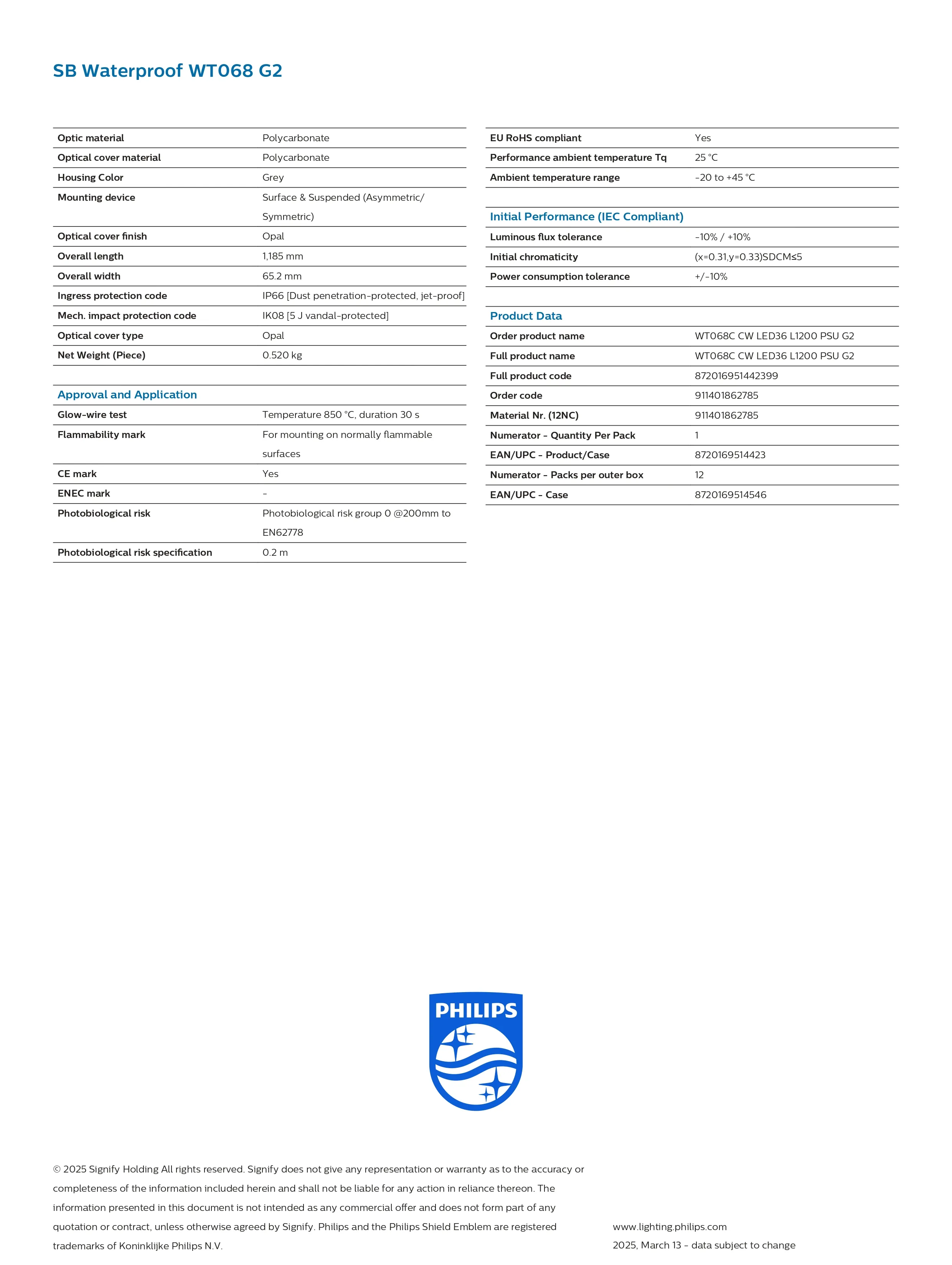 Đèn LED chống thấm WT068C CW LED36 L1200 PSU G2