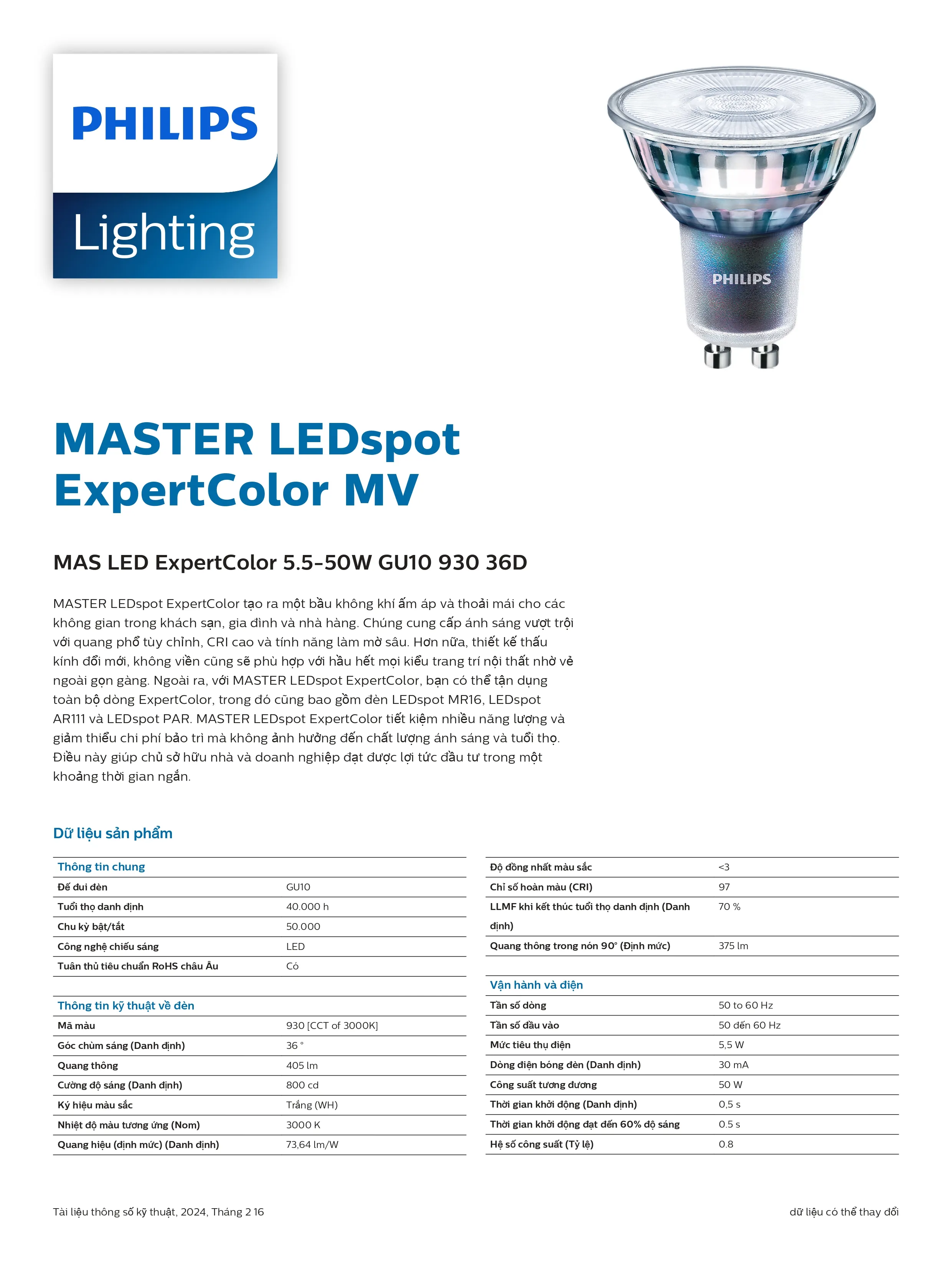 Bóng đèn Mas led ExpertColor 5.5-50w GU10 930 36D