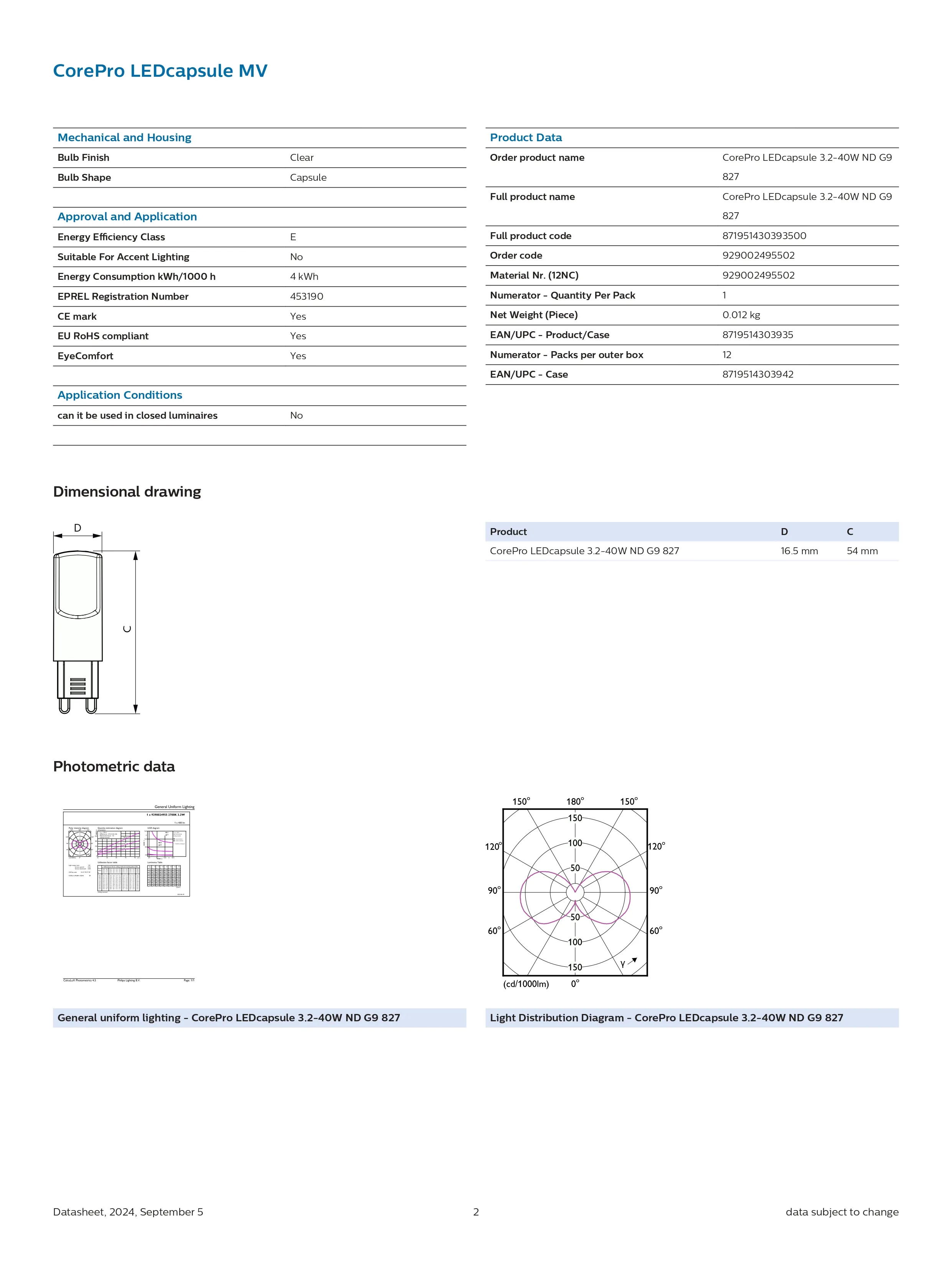 Bóng đèn Philips CorePro LEDcapsule 3.2-40W ND G9 827