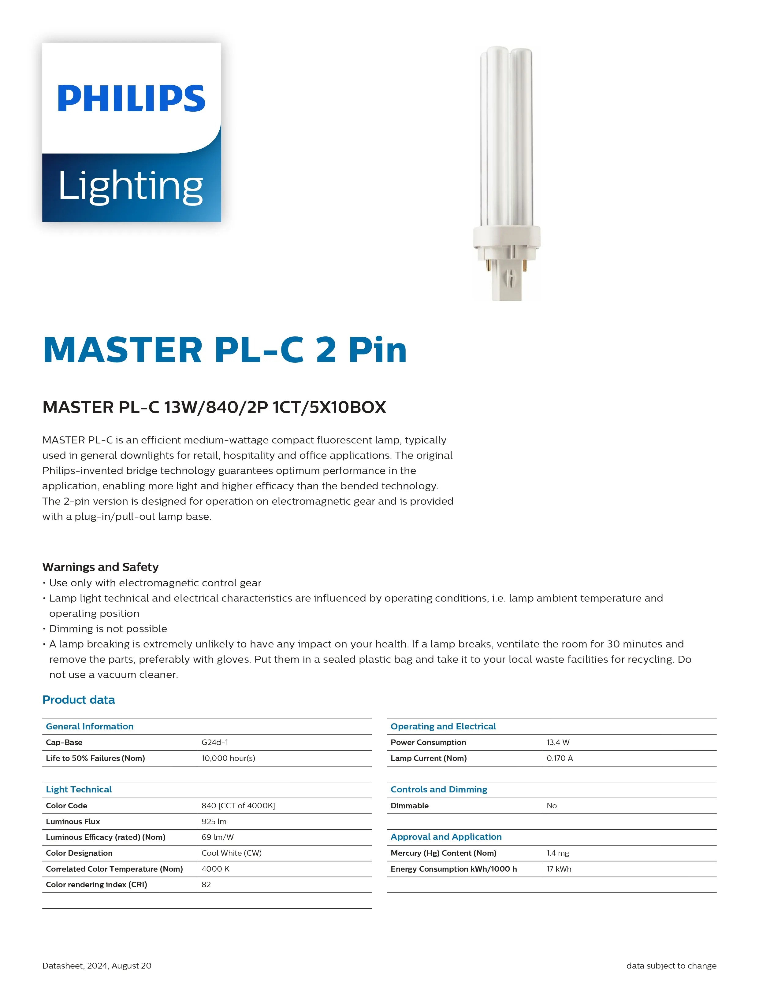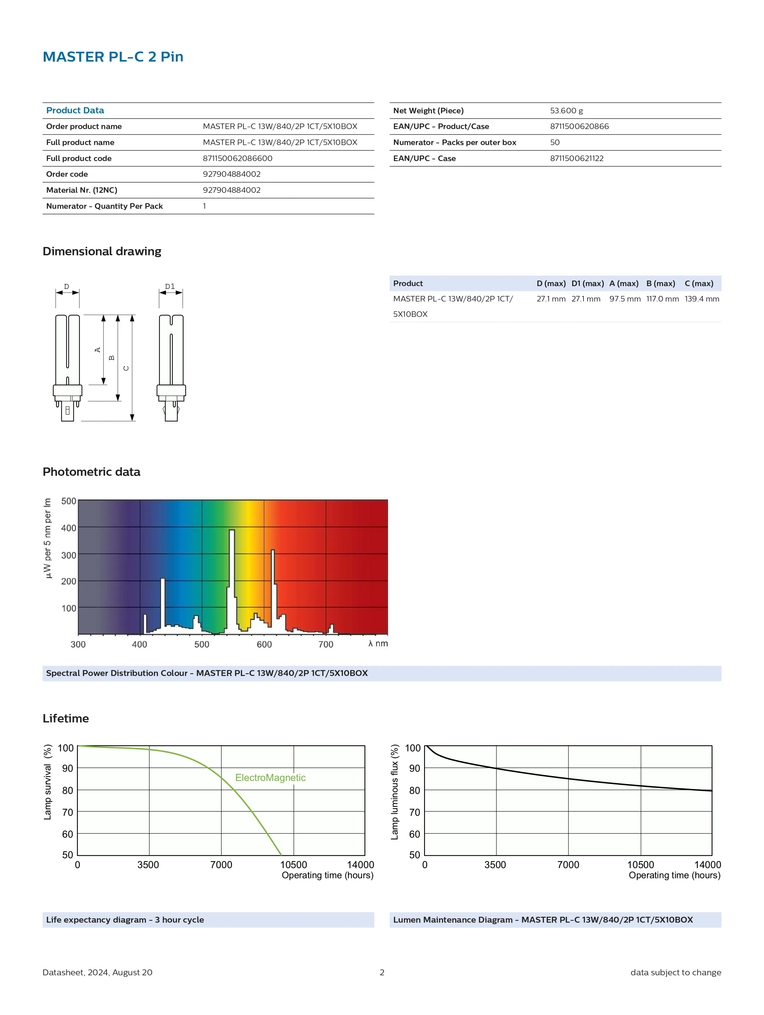 Bóng HQ CP gián tiếp MASTER PL-C 13W/840/2P hoặc PL-C 13W/840/4P 1CT/5X10BOX