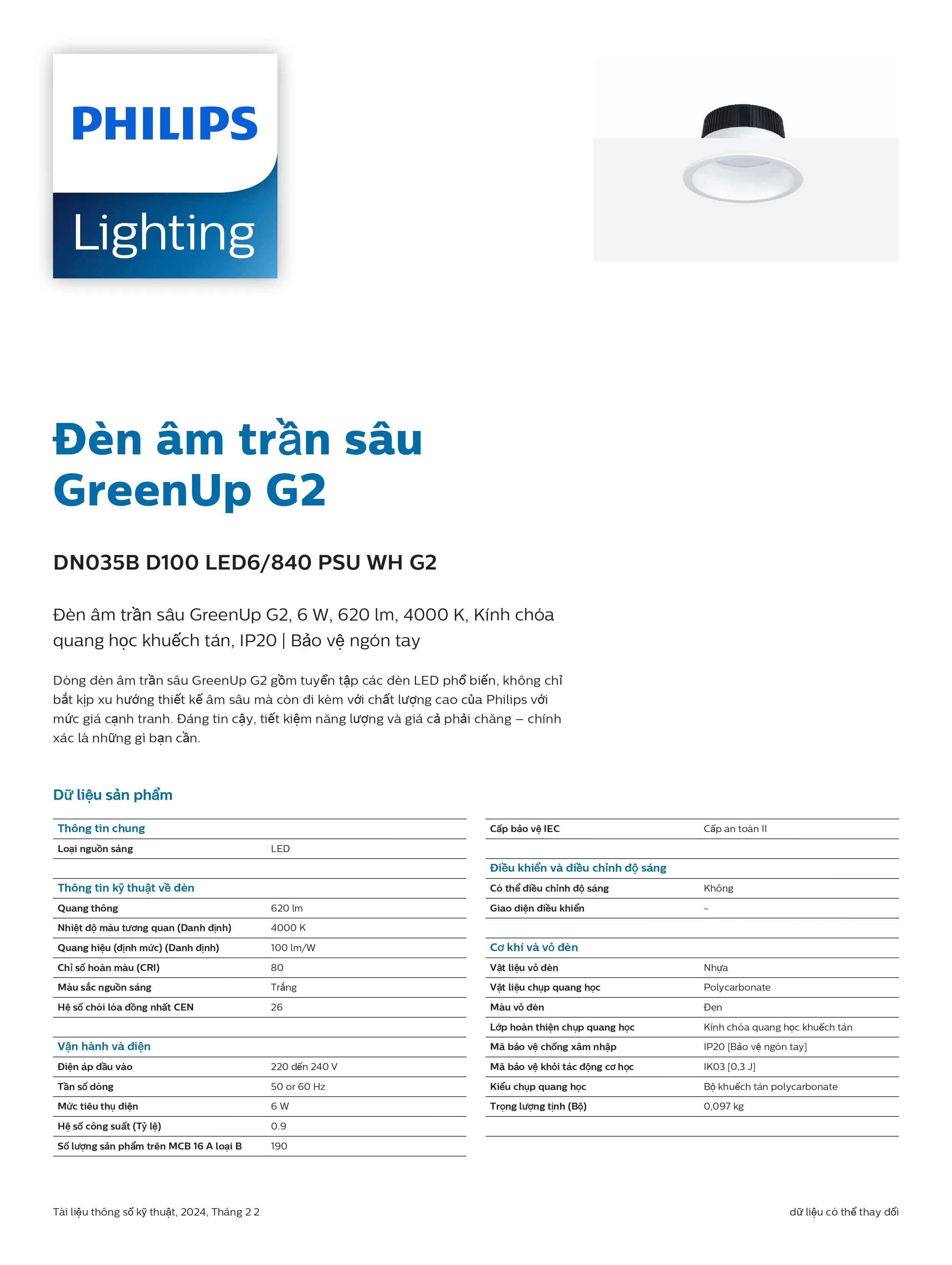 Đèn LED âm trần lỗ cắt 100 DN035B D100 LED6 840 PSU WH G2
