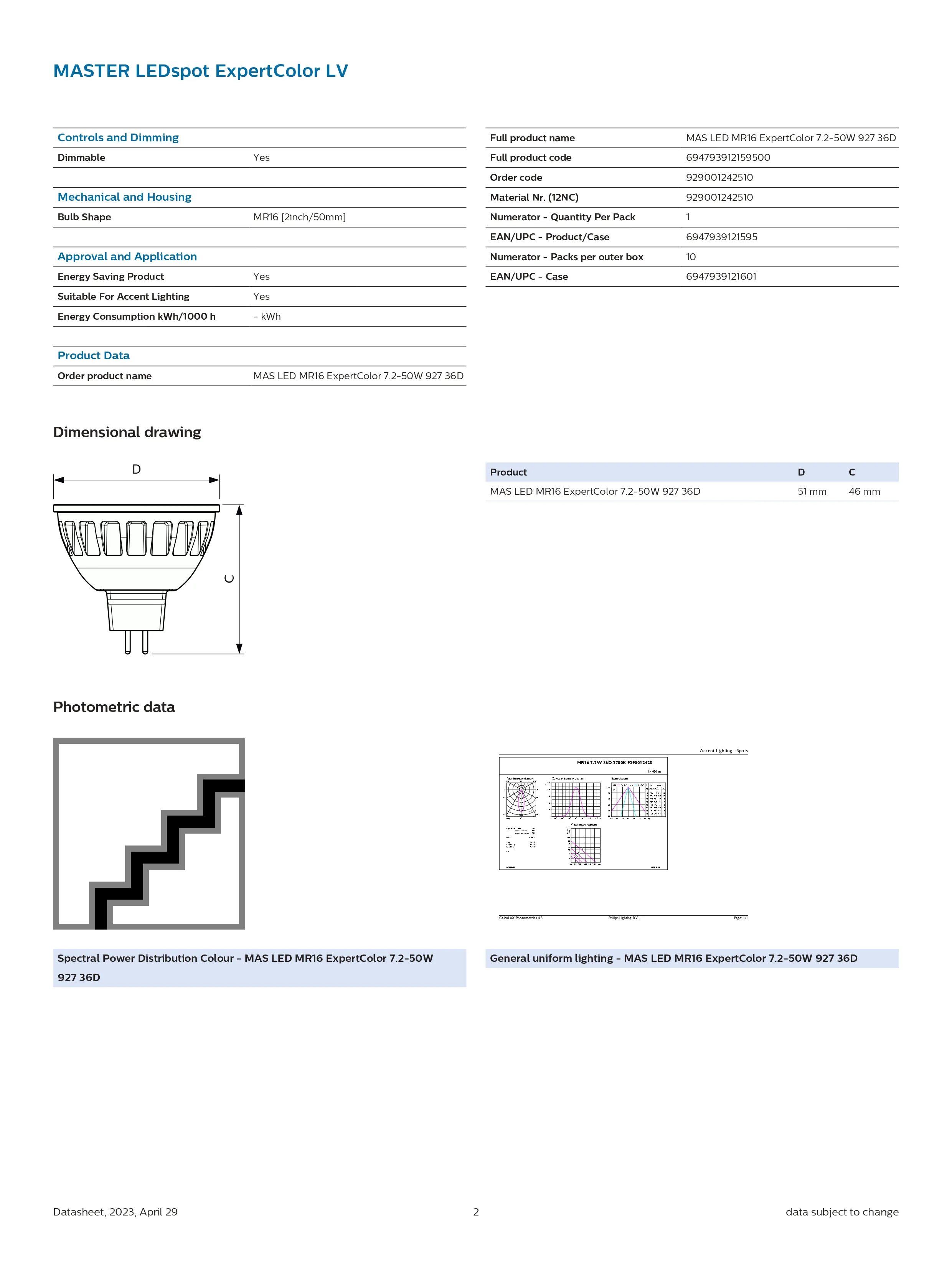 Bóng đèn Philips Mas Led MR16 ExpertColour 7.2-50w 927 36D